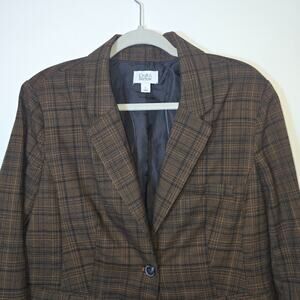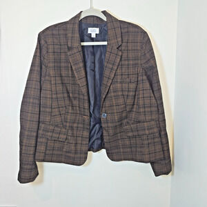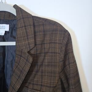 Croft & Barrow Brown Blazer Size L Plaid Preppy Academia