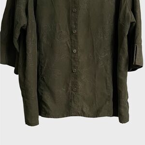Croft & Barrow Button Up Faux Suede Shirt Jacket Women's Sz 3X Embroidered Green