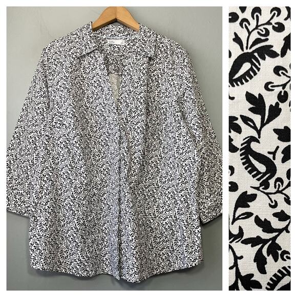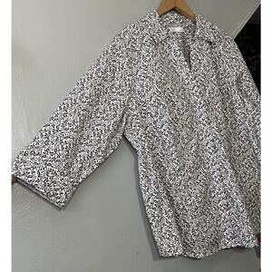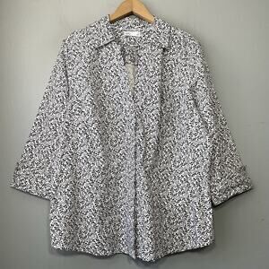Croft & Barrow Button Up Shirt Plus Size 1X Black White Paisley Preppy Career