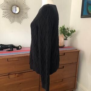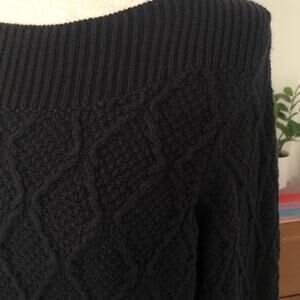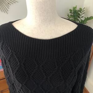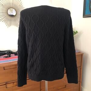 Croft & Barrow Cable Knit Sweater Tag L (fits M) Black Boatneck Preppy Fisherman