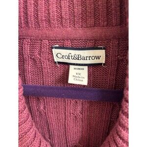 The Croft & Barrow Cable Knit Sweater is a stylish and comfortable option for women in size 1X. This purple pullover sweater features a shawl collar and long sleeves, making it perfect for travel or casual occasions. Made from 100% cotton, this solid cable-knit sweater is machine washable for easy care. With a regular fit and plus size design, this sweater from the trusted brand Croft & Barrow is a versatile addition to any woman's wardrobe.