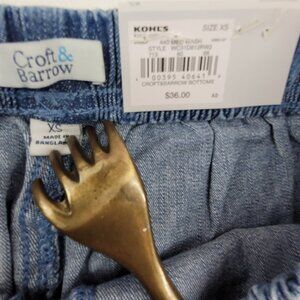 Croft & Barrow Capri Womens XS Crop Blue Denim Jeans Pants Pull On Elastic