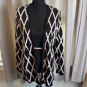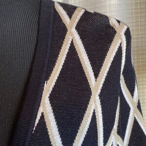 Croft & Barrow Cardigan Sweater Black Beige White Diamond Pattern sz PXL NWT