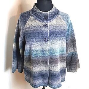 Croft & Barrow Cardigan w/3 Large Buttons, Shades of Ombre, Blue/Gray, Size XL