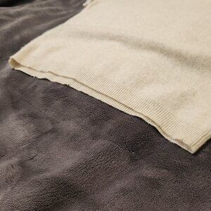 Cream/beige heather cashmere sweater by Croft & Barrow. Slightly cropped fit, rounded cap style short sleeves. Women's size M. Lightweight, very smooth with minimal pilling.