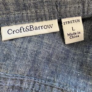 Croft & Barrow Chambray Utility Jacket L Blue Stretch Zip Front Cotton Blend
