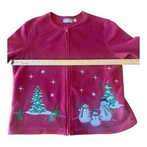 Croft Barrow Christmas Sweater Size PM Full Zip Snowmen Women Red Fleece