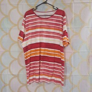 Croft & Barrow Classic Tee Women's 3X Red White Stripe 100% Cotton Crewneck NWT