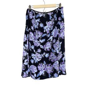 Croft Barrow Coastal Skirt 16 Black Floral Euro Summer Old Money Preppy Classic