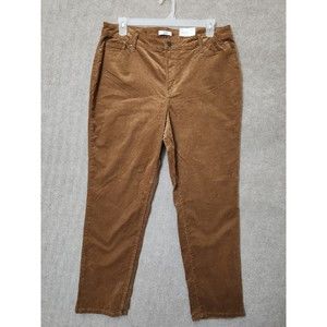 Croft Barrow Corduroy Pants Womens 18 Brown Straight Mid Rise Stretch NEW