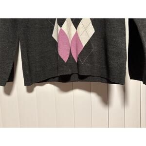 Croft & Barrow Diamond Print Pullover Cardigan Sweater Gray Pink Size M