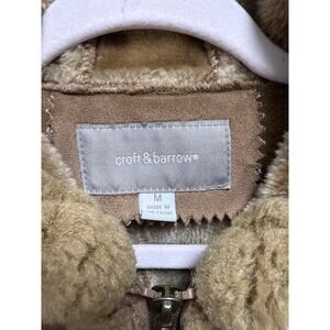 Croft & Barrow Embroidered Faux Suede Fur Trim Zip Up Hooded Jacket Size Medium