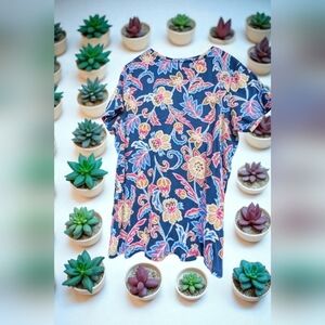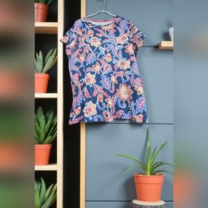 Croft & Barrow Essential Crewneck Tee Color: Navy Artisan Blooms Size: L (EUC)