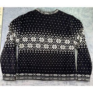 Croft & Barrow Fair Isle Sweater Nordic Large Black Silver Toned Metal Hooks VTG