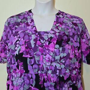 Croft & Barrow Floral Babydoll Blouse Y2K Mesh Lined Purple Black Plus Size 2X