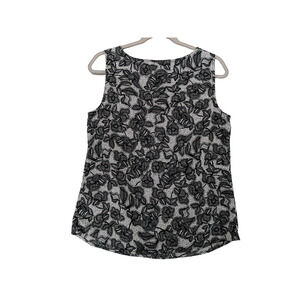 Croft & Barrow Floral Blouse M Black White Sleeveless Crewneck Layer Office Top