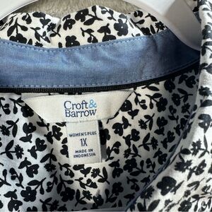 Croft & Barrow Floral Print Button Front Blouse Shirt Roll Tab Sleeve Plus Sz 1X
