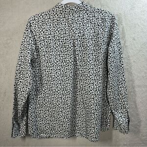 This button front blouse is in very good condition with no stains or tears. It is made of cotton with 3% spandex for stretch. It has long roll tab sleeves. See photos for details and measurements.