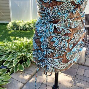 Cute halter top style with side rouching - rounded hemline from rouched sides