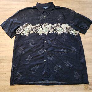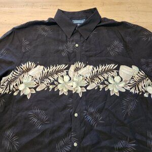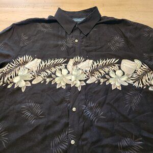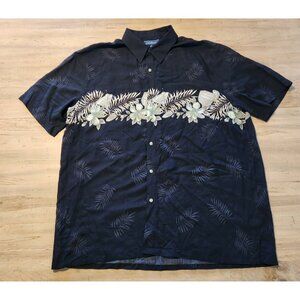 Croft & Barrow Hawaiian Shirt Tropical Rayon Button Up Black Short Sleeve XL