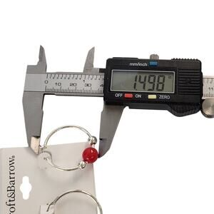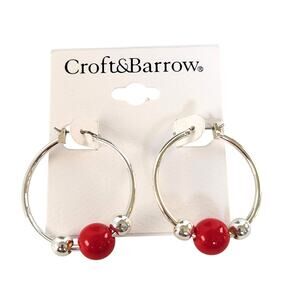Croft & Barrow Hoop Earrings Red Beads Silver Tone Pierced, Free Gift Bag 1.5 in
