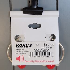 Croft & Barrow pierced hoop earrings featuring bold red plastic beads with silver-tone accents. Lightweight and easy to wear with latch back closures. Estimated to measure about 1.5 inches in diameter.