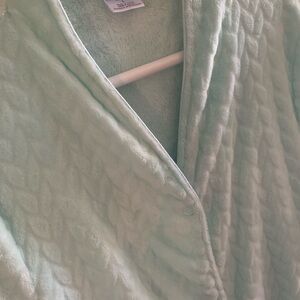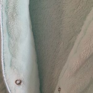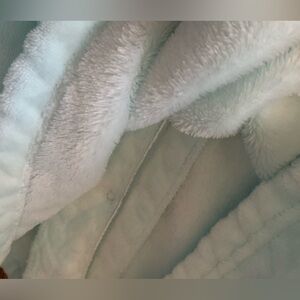 So soft, pale blue robe! Poly/lightweight warmth. Full snap closure. Deep pockets. “Go-to” comfy!