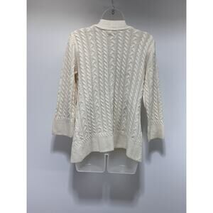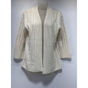 Croft & Barrow Ivory Cable Knit Open Front Cardigan Sweater Long Sleeve Size M