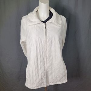Croft & Barrow Ivory Quilted Full Zipper Front Sweater Jacket