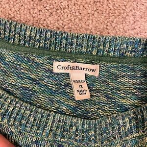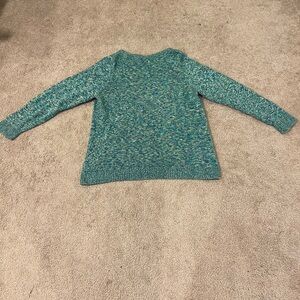 In good shape! Knit sweater with a cute neckline! Cool mix of green and blue colors! Perfect on its own, but could be dressed up as well! Offers always welcome!
