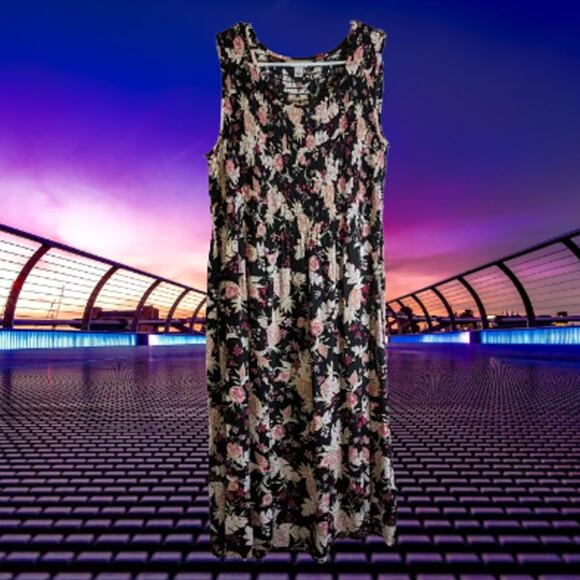 Croft & Barrow Large sleeveless tubed top pineapple print black pink dress. Gently used. No rips, stains, snags. Rayon.