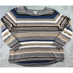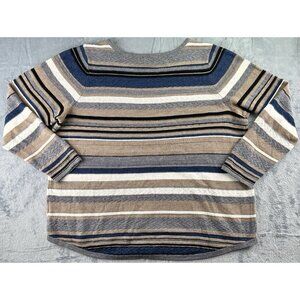 Croft & Barrow Lightweight Sweater Women 1X Multi Striped Long Sleeve Round Neck