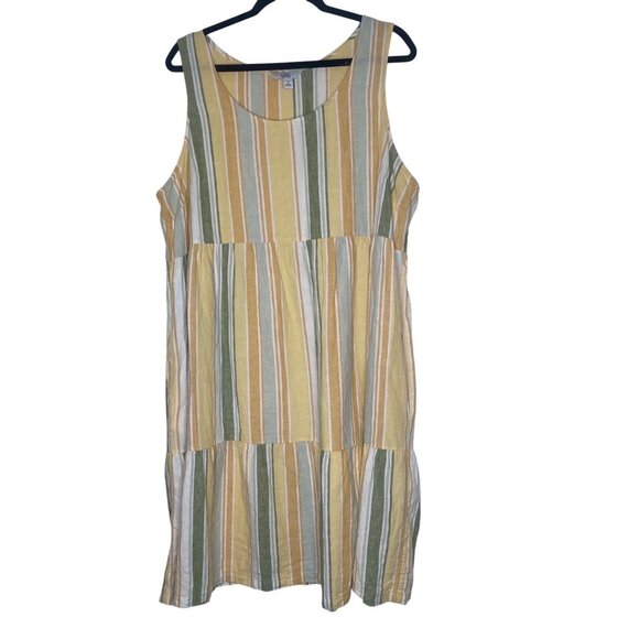 Croft & Barrow Linen Blend Dress Womens 1X Yellow Striped Sleeveless Sundress