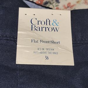 Croft & Barrow Linen Blend Flat Front Shorts 36 NWT 8.5 in Inseam Navy