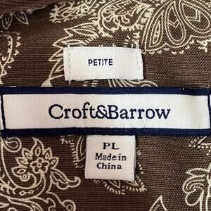 Croft & Barrow Linen Blend Jacket Brown Floral Mandarin Collar Large Petite Boho