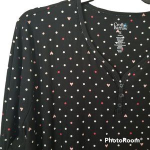 New with tags. Plus size 3X. Featuring a soft jersey construction, this women's Croft & Barrow long sleeve henley sleepshirt will make bedtime even dreamier. Black with hearts and polka dots.