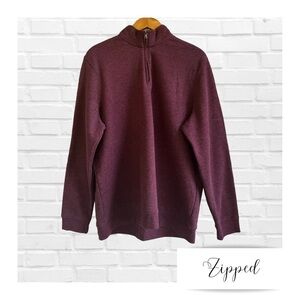 A great Croft & Barrow half zip sweatshirt sweater in a maroon heather color. Tags were removed but he never wore it.