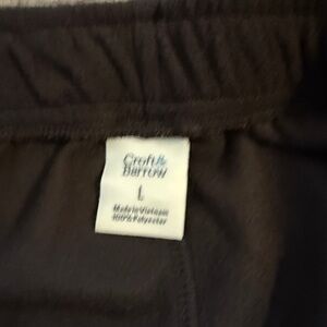Croft and barrow men’s loungewear pants 100% polyester new with tags. Waist line measures 17 inches rise is 12 inches, length 32 inches. Soft to touch easy pull on pants cozy for colder weather. Nice lounge pants to relax in.