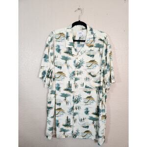 Croft & Barrow Men's Green Rayon Fly Fishing Outdoor Button Down Shirt Size XXLT