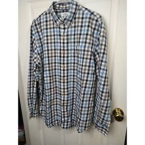 Croft & Barrow men's L checked blue gingham long sleeve collared button shirt in good condition. Casual workwear business travel normcore