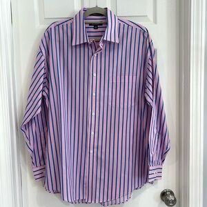 Croft & Barrow Mens Pink Blue Striped Button Up Dress Shirt Sz L 16.5/17 Classic