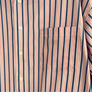 Croft & Barrow Men's PINK with Blue White Stripes Button Up Long Sleeve Dress Shirt Size L 16.5/17 Wrinkle Resistant Easy Care Classic Timeless Preppy