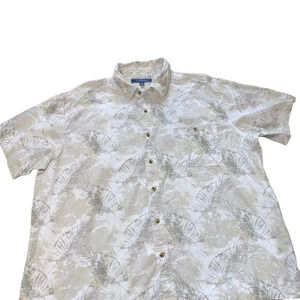 Men's Short Sleeved Button Down 100% Cotton Shirt by Croft & Barrow. Hawaiian style shirt, leaf pattern. Size XL. Excellent Used Condition, like new.