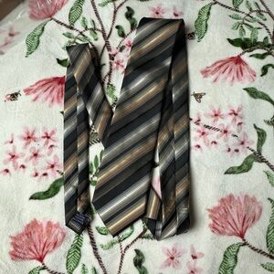 Croft & Barrow Men's Tie - Black, Gray, Gold Stripes