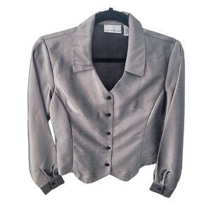 This elegant gray blouse offers a sophisticated touch to any outfit. Perfect for both casual and formal occasions. Button-up.