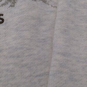 Color: Marbled cream and light gray. The ribbing/cuffs have a dark brown trim on the end