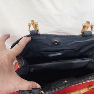 Croft & Barrow Multi Colored Straw Purse with Bamboo Handles