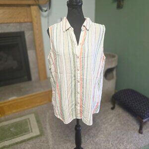 Croft & Barrow Multicolor Striped Sleeveless Button-Down Top – Size L