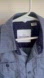 Navy button-up shirt featuring polka dot lining. Ideal for versatile styling.
