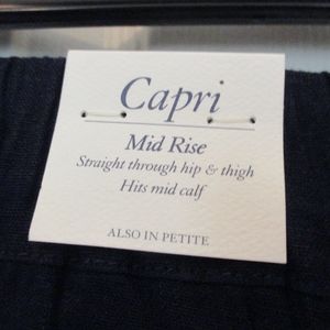 Never worn navy capris. Great for transitioning between seasons. Comfortable fit with a drawstring waist. Perfect for work, religious services or casual wear.